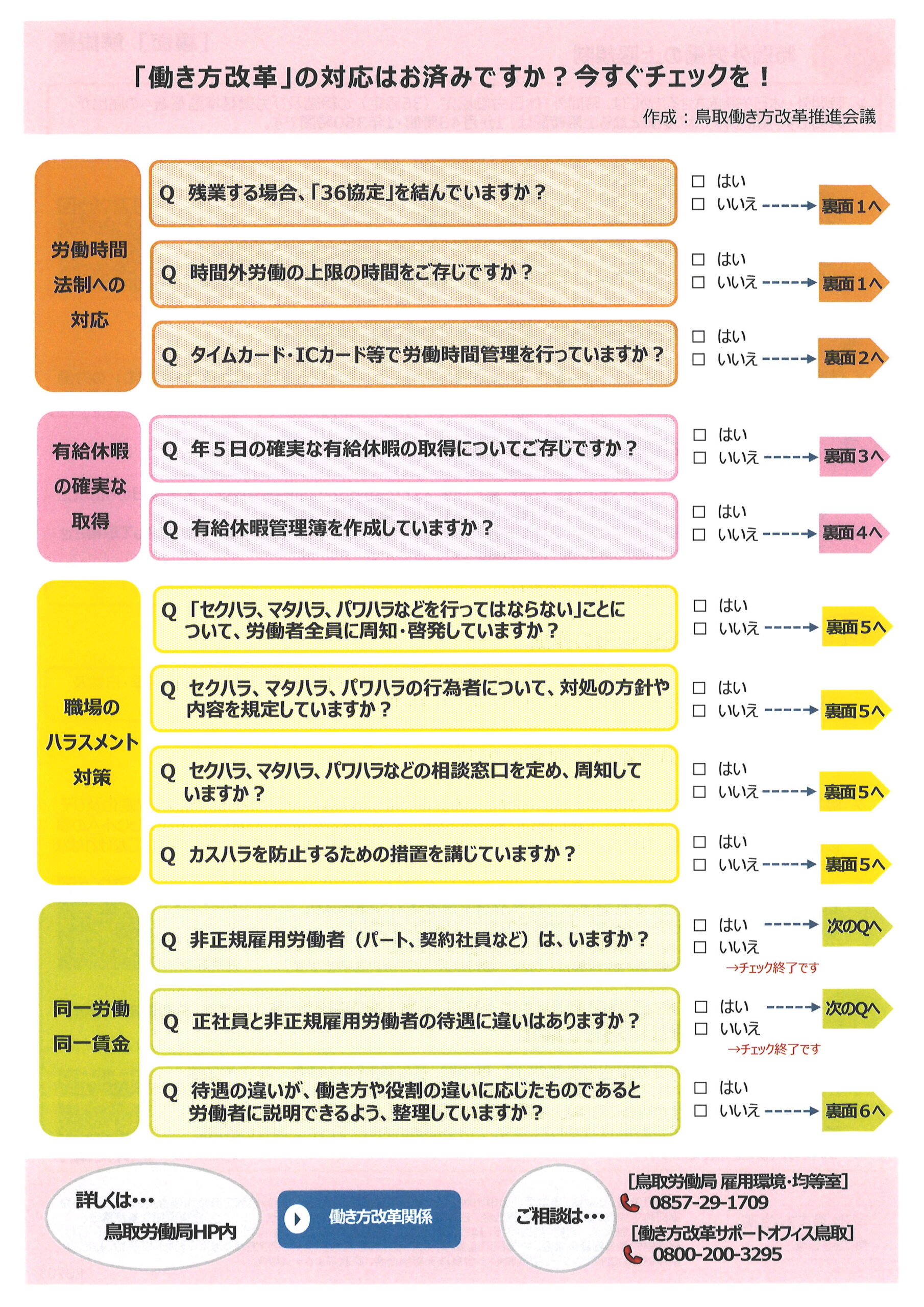 ◇ 働き方改革推進会議事務局 鳥取労働局 雇用環境・均等室 ☏ 0857-29-1709