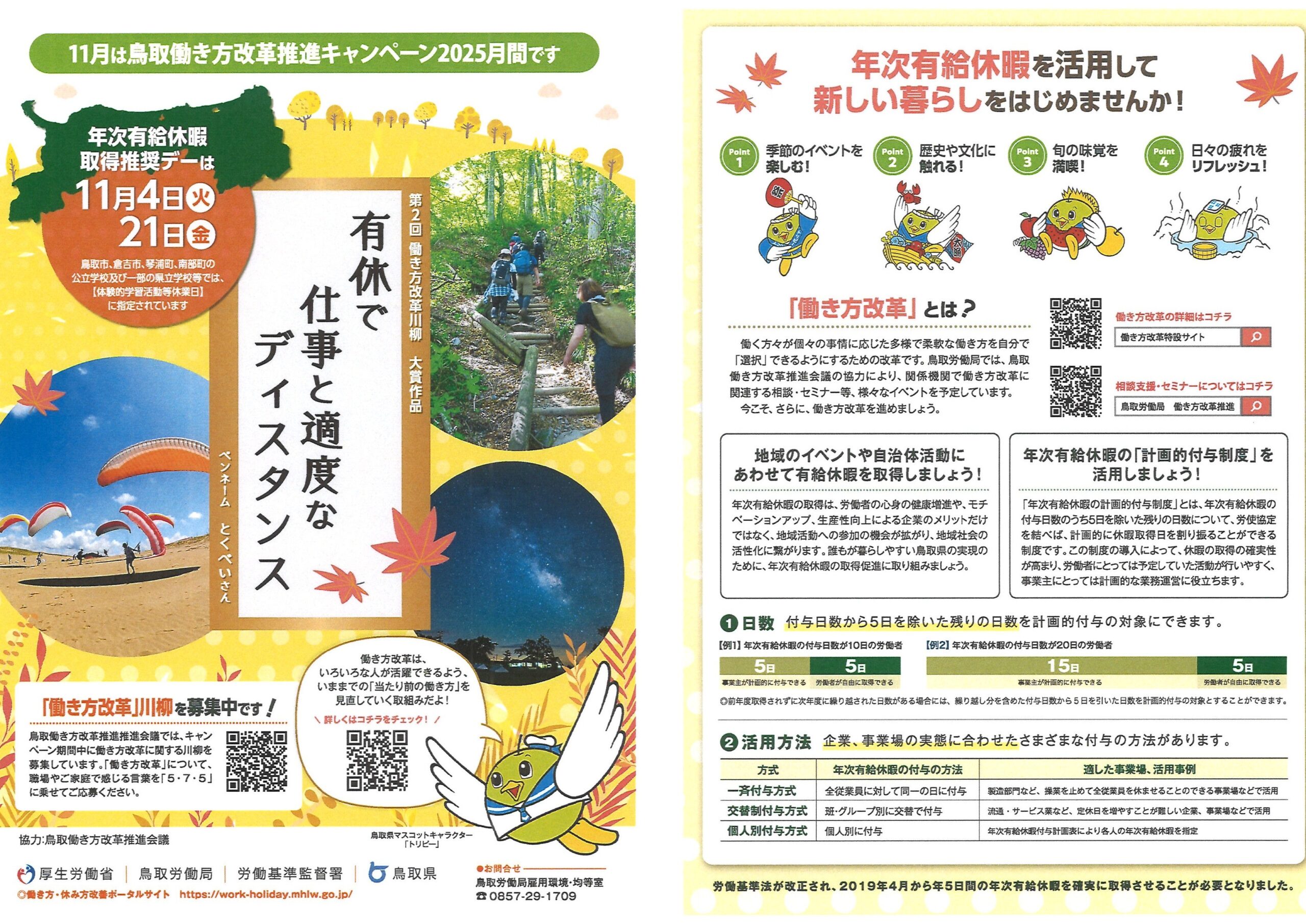 「11月は鳥取働き方改革推進キャンペーン2025月間です」(リーフレット) 表・裏