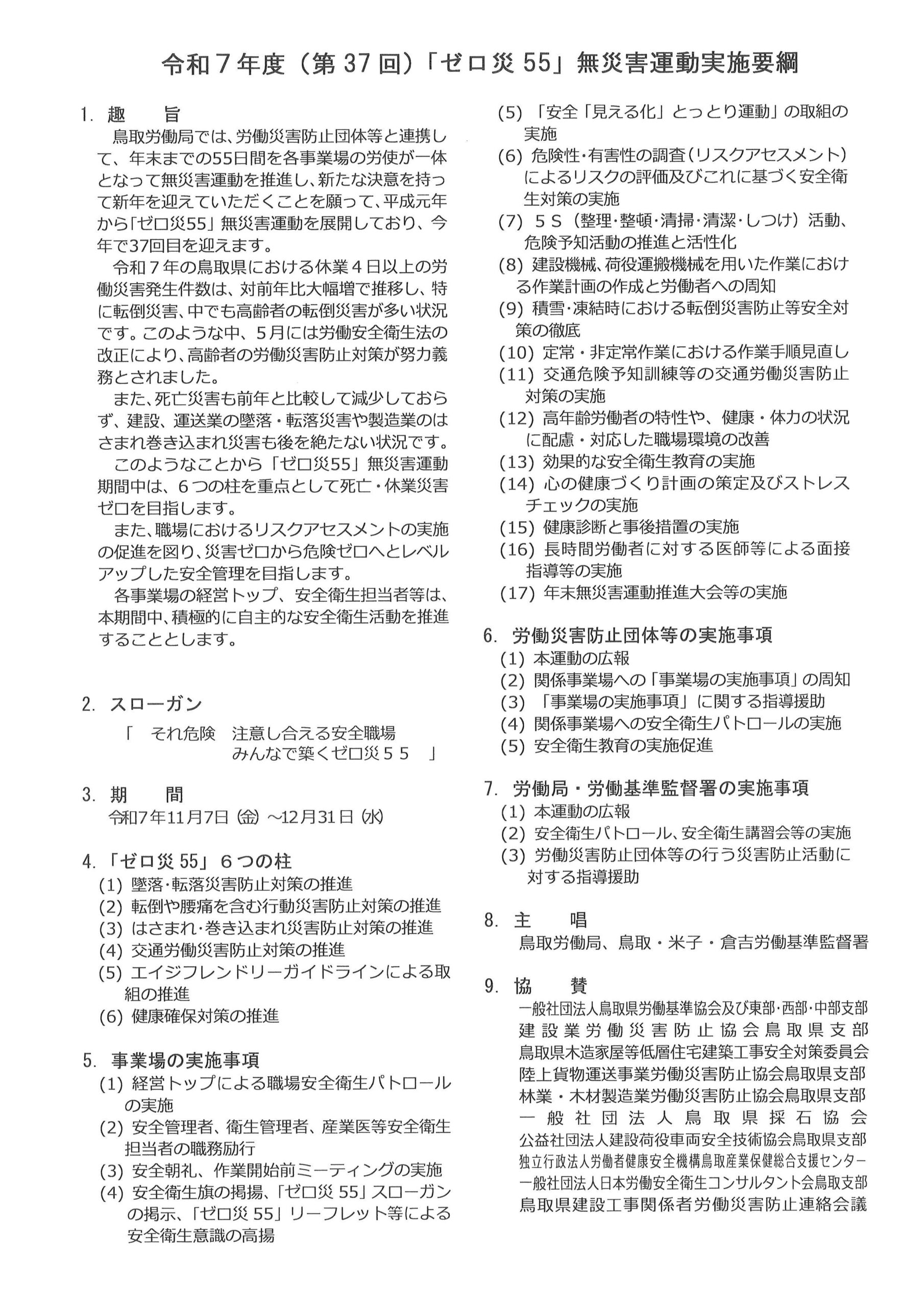 令和7年度「ゼロ災55」無災害運動スローガン決定のお知らせ