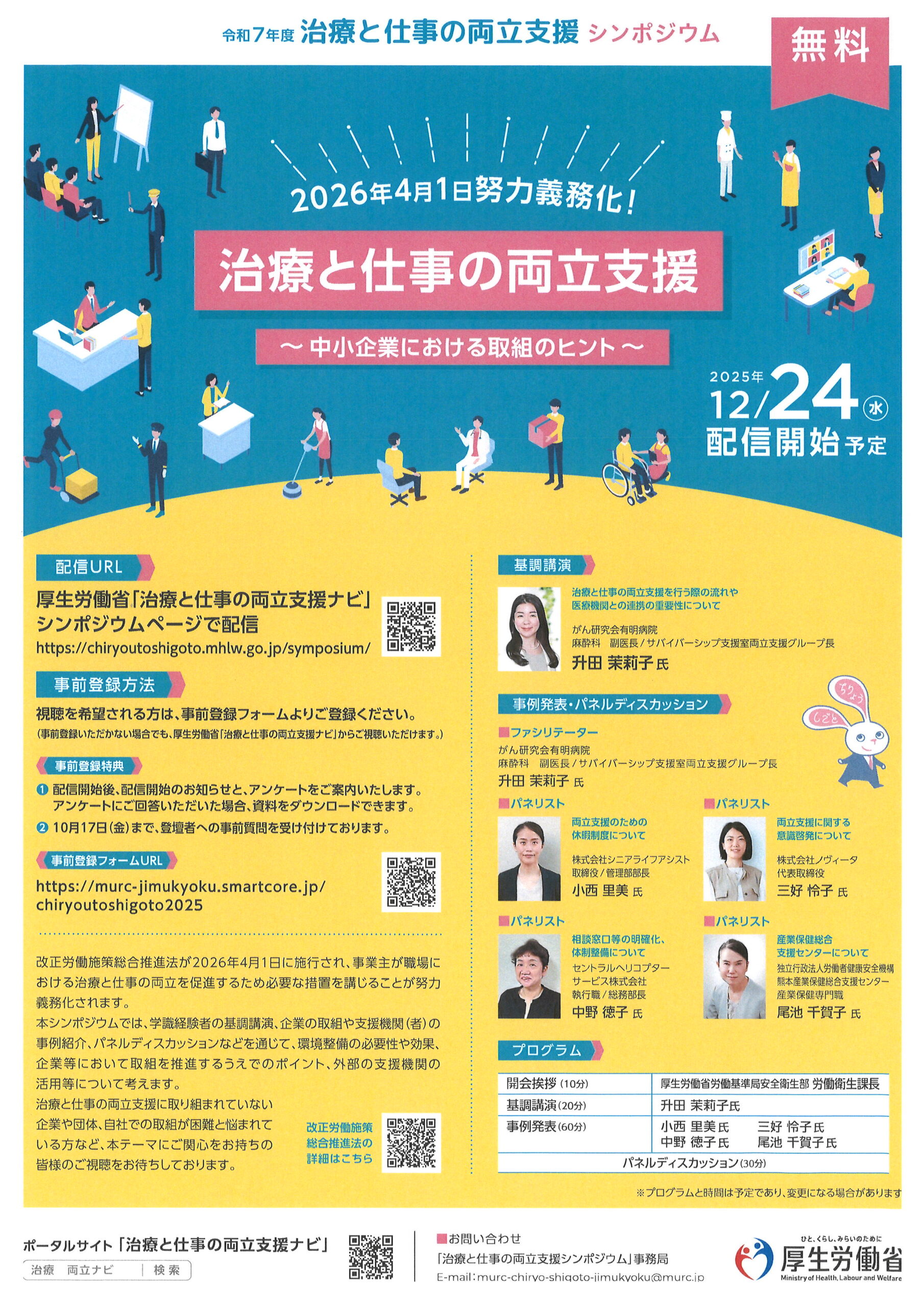 2026.4.1努力義務化!「治療と仕事の両立支援シンポジウム」12/24 配信開始予定のご案内