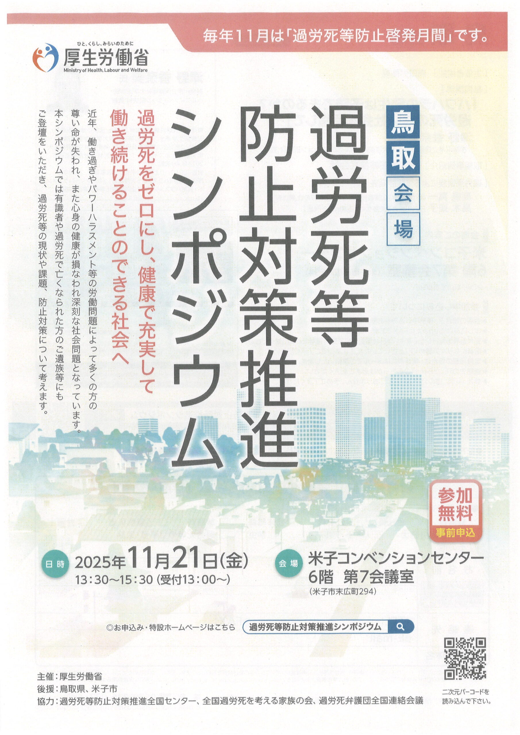 【鳥取会場】<11/21 過労死等防止対策推進シンポジウム>