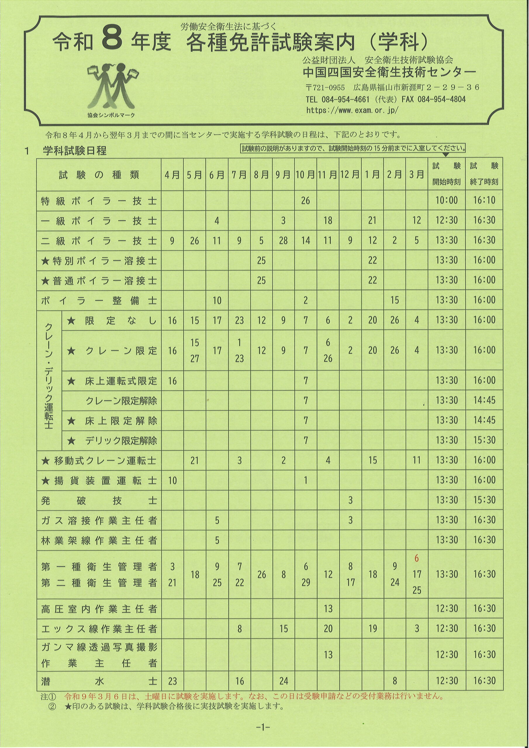 ◇◇ ◇◇※【お問い合わせ】上記1ページ中国四国安全衛生技術センター Tel: 084-954-4661(代表)又は ◇ 上記4ページ記載の各団体窓口へお願いします。