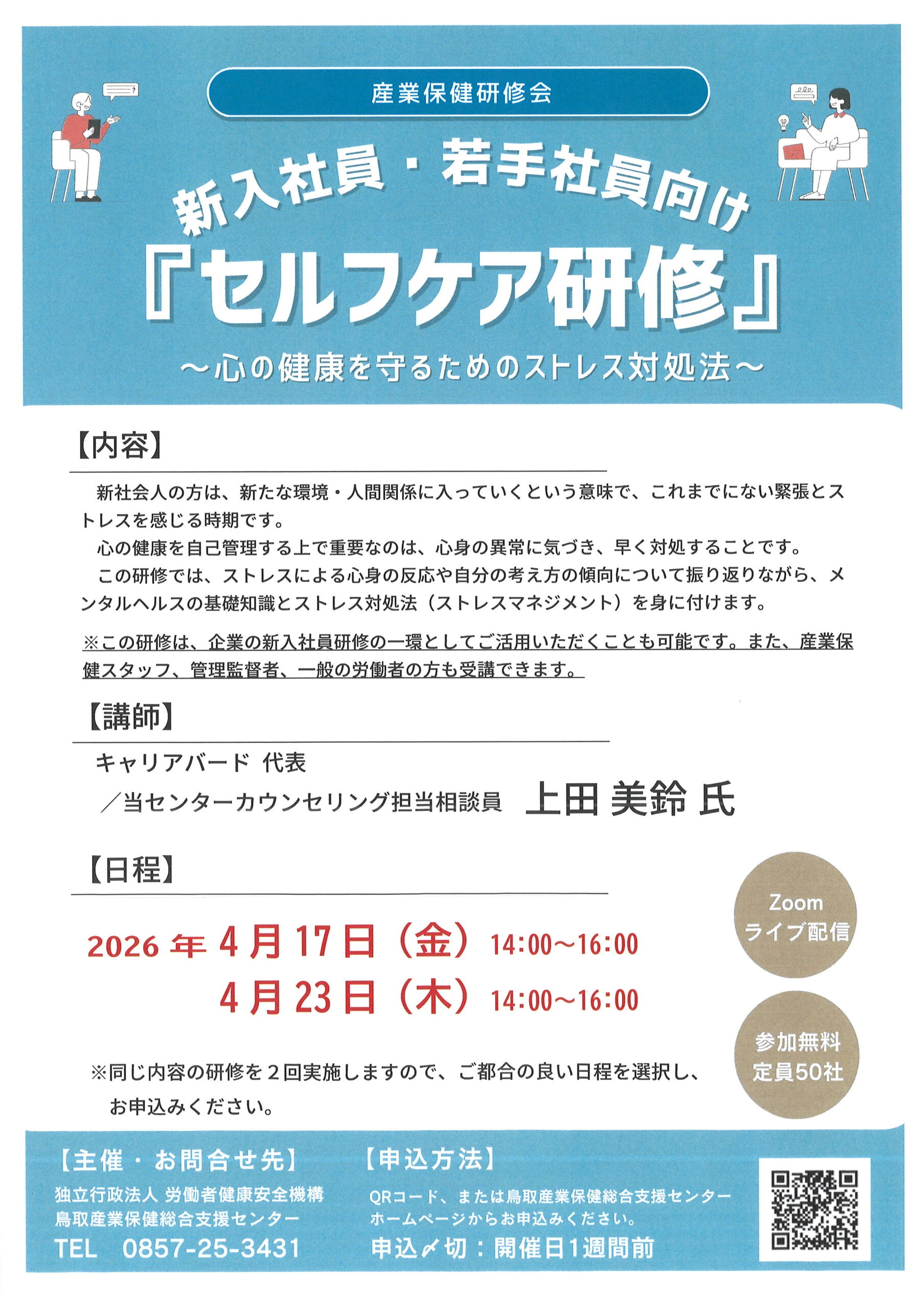 【Web研修会のお知らせ(ライブ配信)】 (新入社員・若年社員向けセルフケア研修)