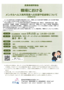 2026-05-15(金)【Web】5/15『職場におけるメンタル有所見者への支援や配慮等について』(R8.1/17の録画配信)
