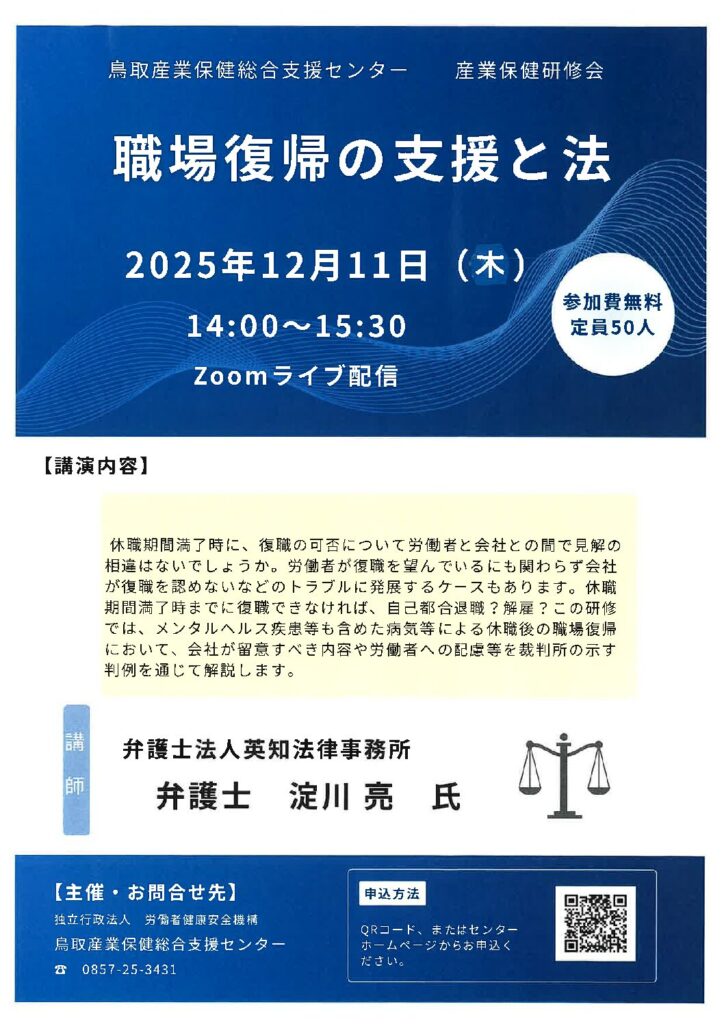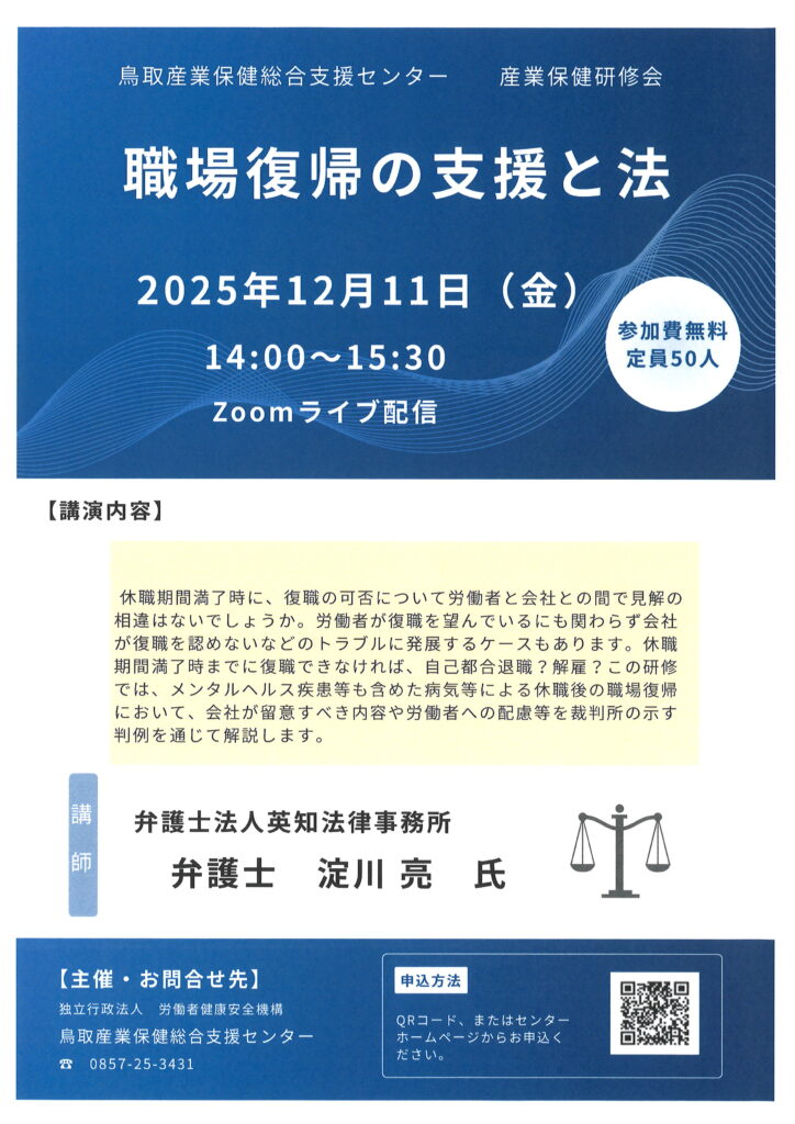 【Web】12/11『職場復帰の支援と法』(ライブ配信)