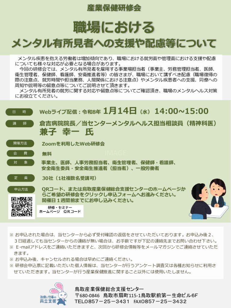 【Web】1/14『職場におけるメンタル有所見者への支援や配慮等について』(ライブ配信)