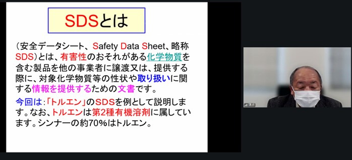 ◇【講師】田中 誠 氏 『事業者が自律管理を行うための化学物質のリスクアセスメントの手順について』説明。