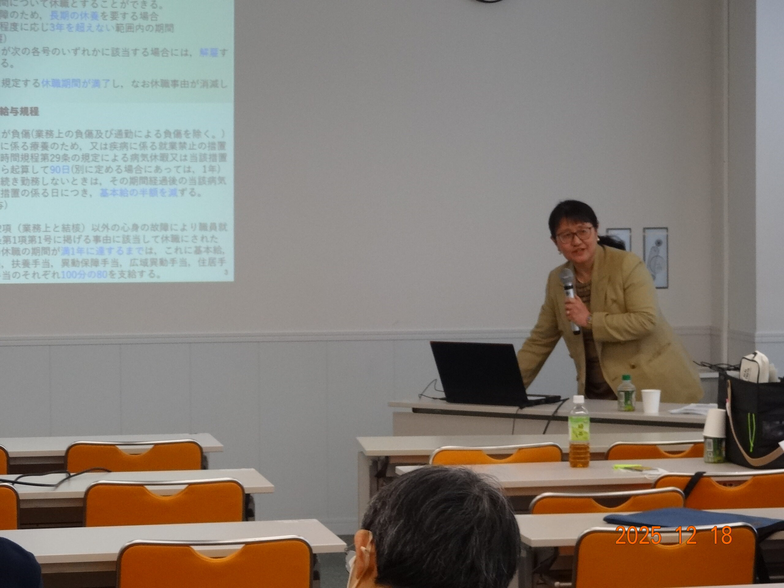 職場におけるメンタル不調者の増加の中で、適応障害とうつ病の違い、自律神経失調症のほか様々な精神疾患の症状や治療方法について説明、「病状への理解を深め、労使のコミュニケーションを密に取ることが大事です」「メンタルヘルス対策は、事業者の社会的責任であるとともに、活力のある職場作りの第一歩です。」と語る岡田浩子氏
