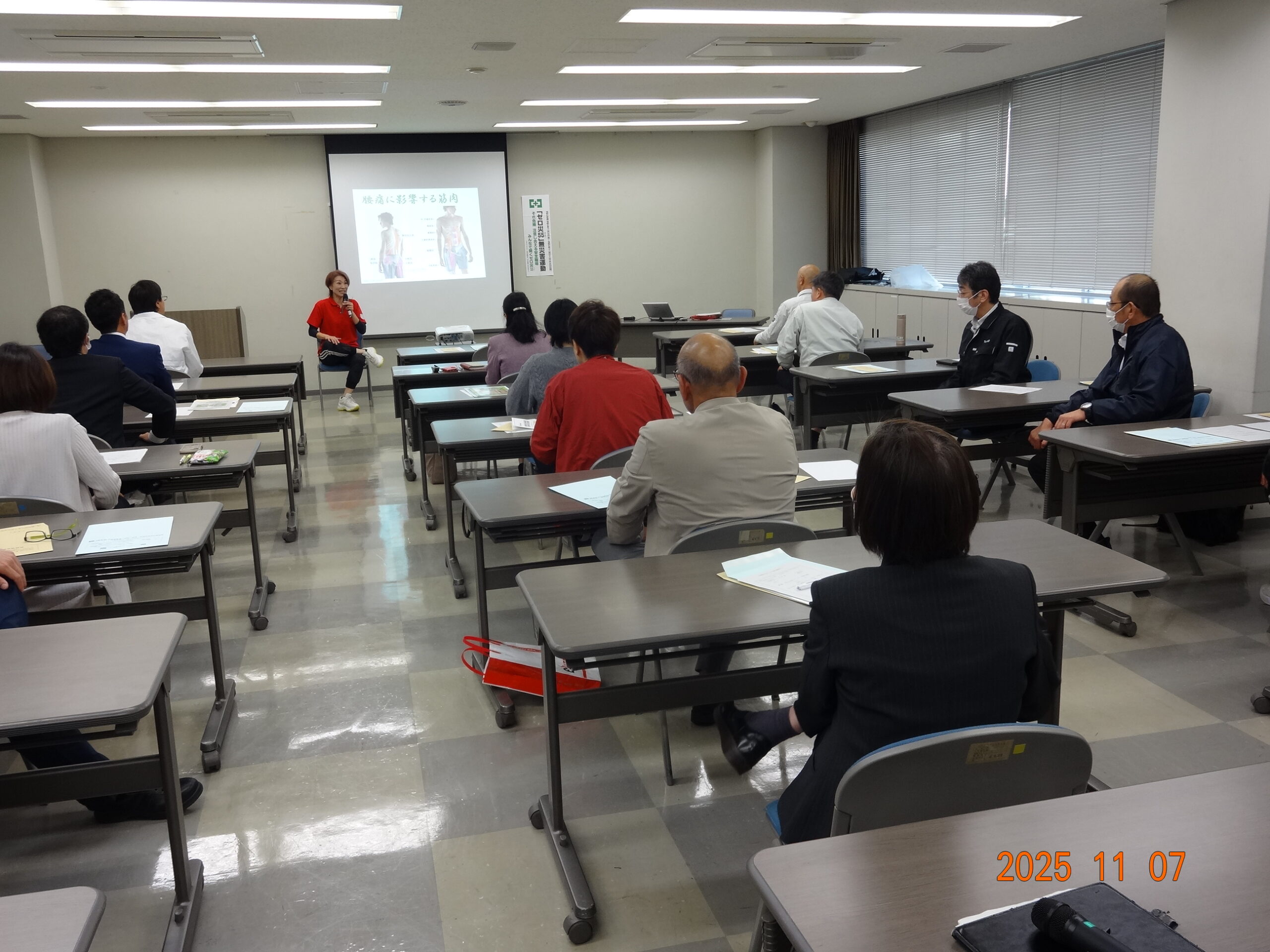 ◇◇【講師】田岡 隆夫 氏 「衛生委員会活性化テキスト」を教材にしながら聞き入る参加者