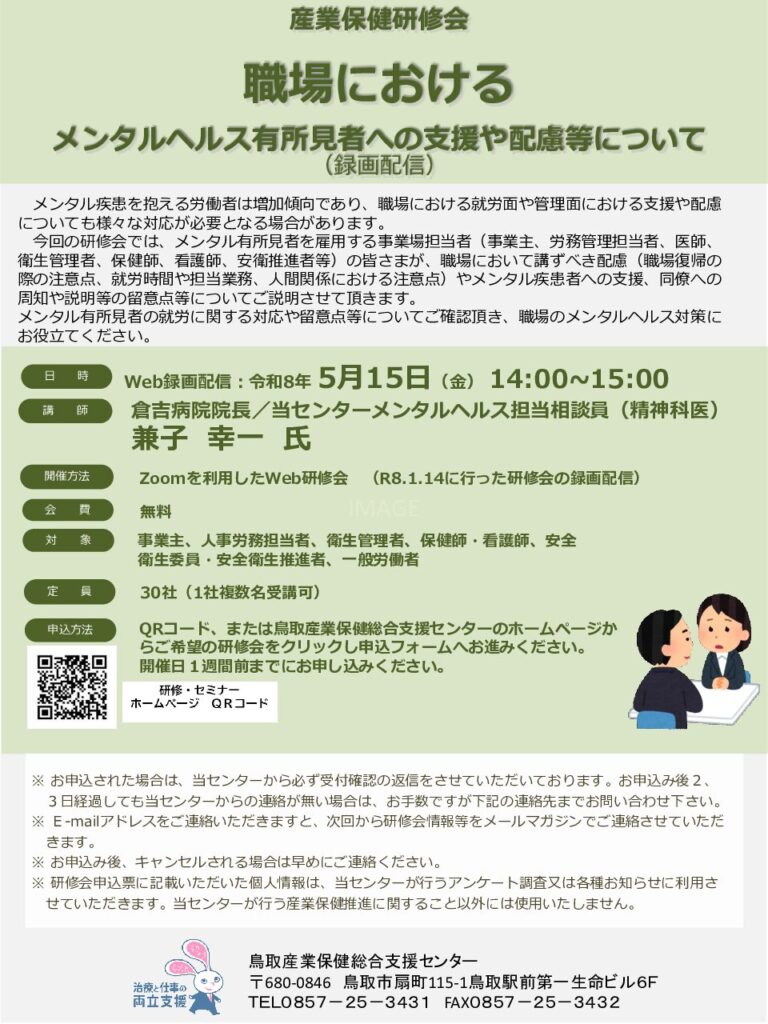 【Web】5/15『職場におけるメンタル有所見者への支援や配慮等について』(R8.1/17の録画配信)